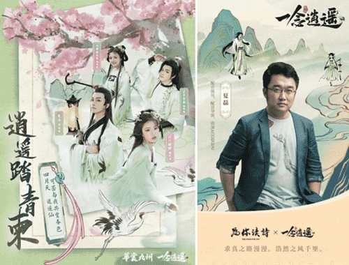 在游戏之外,,,《一念逍遥》一直致力于打造国风修仙原创IP,,,,以音乐、、、漫画,,,,小说等衍生内容去延展丰富游戏内容。。上线以来,,,,整整做了十首歌,,,小说应该也是喜马拉雅平台今年游戏品类小说收听量Top1的作品;而在营销的内容传播上,,《一念逍遥》也一直秉承比较国风的基调,,,,传递诗词、、、、文化内涵,,,,如如清明节定制汉服合作,,,,传递中国传统的清明踏青、、清明诗会文化。。。
